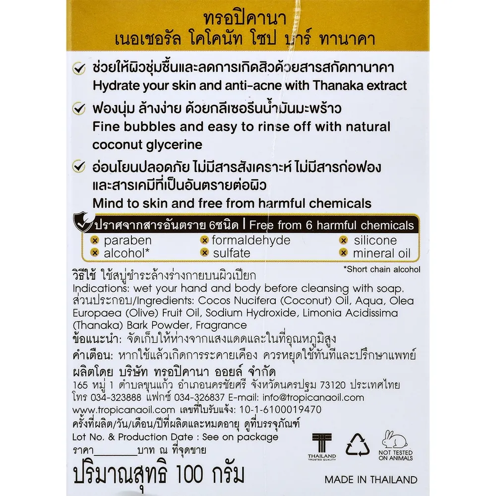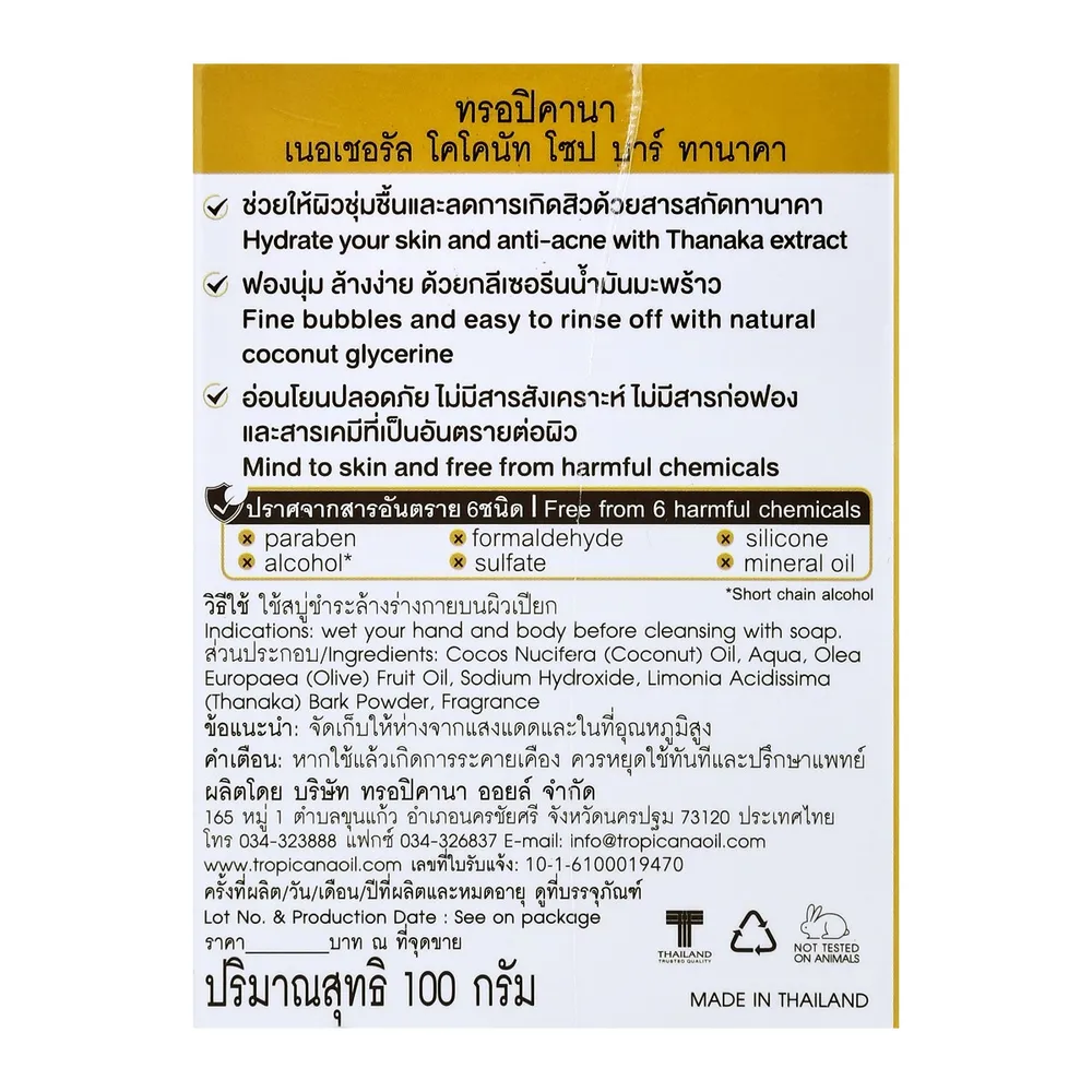 ทรอปิคานา เนอเชอรัล โคโคนัท โซป บาร์ ทานาคา 100 ก.