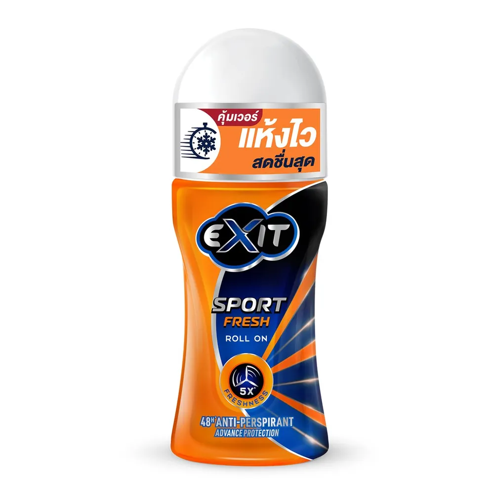 เอ็กซิท โรลออน สปอร์ต เฟรช กลิ่นหอม สดชื่นยาวนาน พร้อมปกป้อง มั่นใจได้ตลอดวัน ให้การปกป้องกลิ่นกายยาวนาน 48 ชั่วโมง ช่วยลดการสะสมของเหงื่อ แห้งไวไม่เหนียวเหนอะหนะ ไม่ทิ้งคราบเหลือง<br />