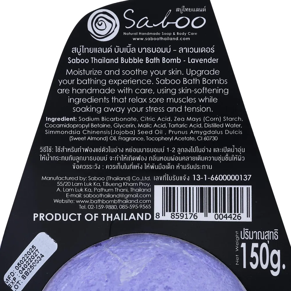 สบู่ไทยแลนด์ บับเบิ้ล บาธบอมบ์ ลาเวนเดอร์ 150 ก.