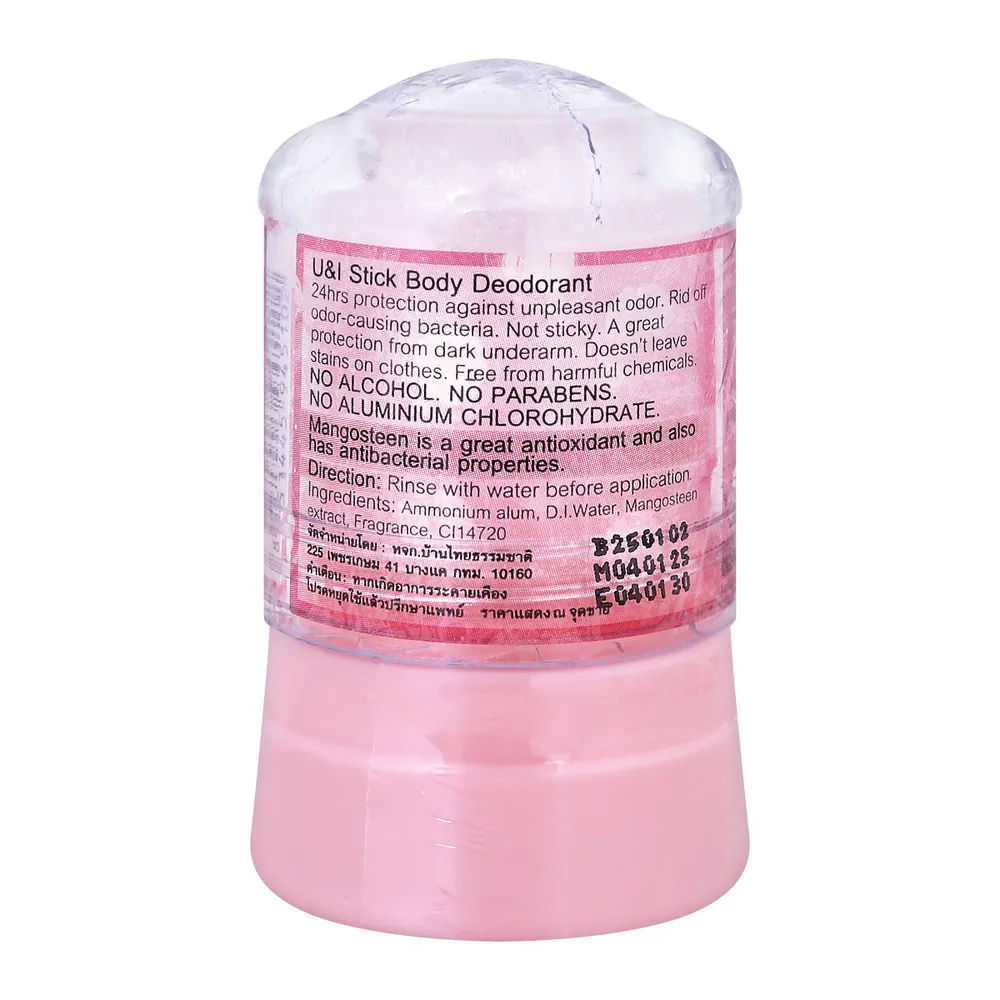 ยูแอนด์ไอ สารส้มแท่งระงับกลิ่นกาย ผลิตจากสารส้มเกรด A สะอาดปลอดภัย ไม่มีสารกันบูด ไม่มีแอลกอฮอล์ ลดสารเคมีตกค้างใต้วงแขน<br />