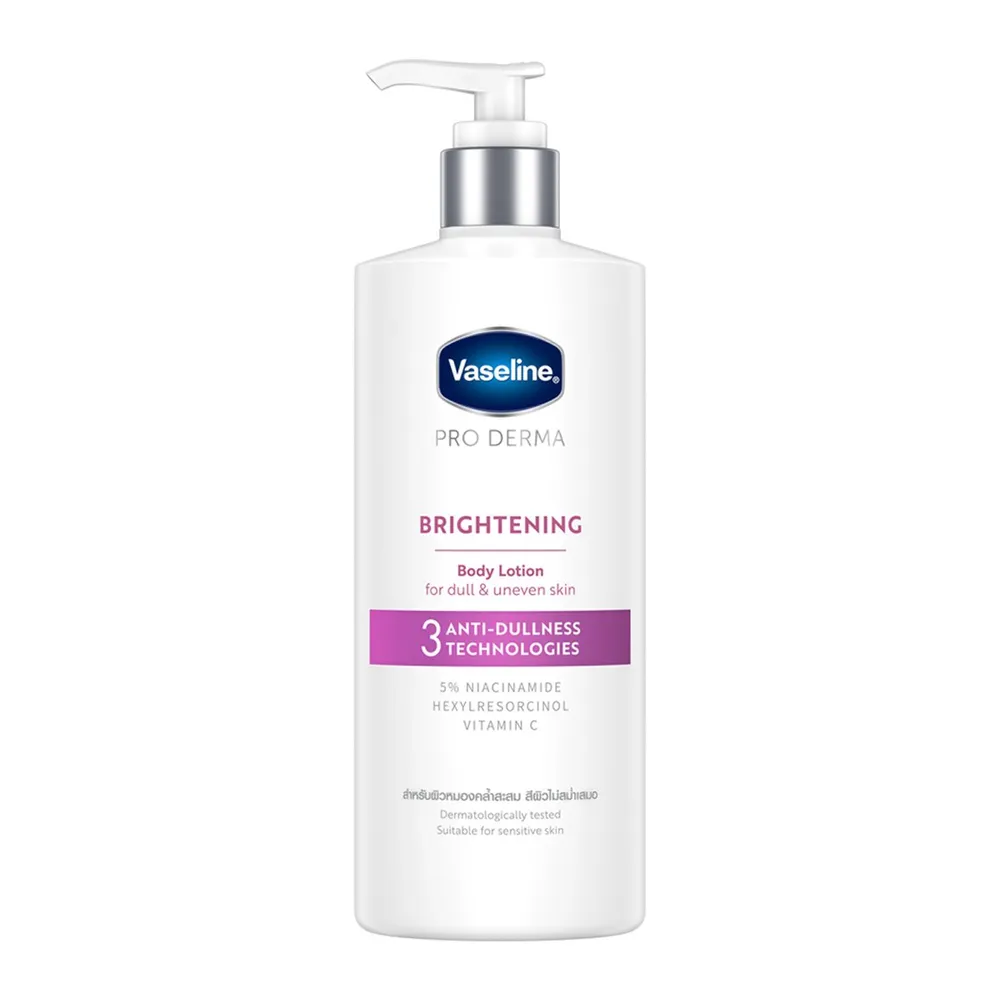 วาสลีน ไบรท์เทนนิ่ง บอดี้ โลชั่น ผิวกระจ่างใสขึ้นจากภายใน&#39; จัดการปัญหาผิวหมองคล้ำด้วย 3 พลังปลดล็อคผิวใสอย่างมีประสิทธิภาพ พร้อมส่วนผสมที่เข้มข้นที่สุด&quot;<br />