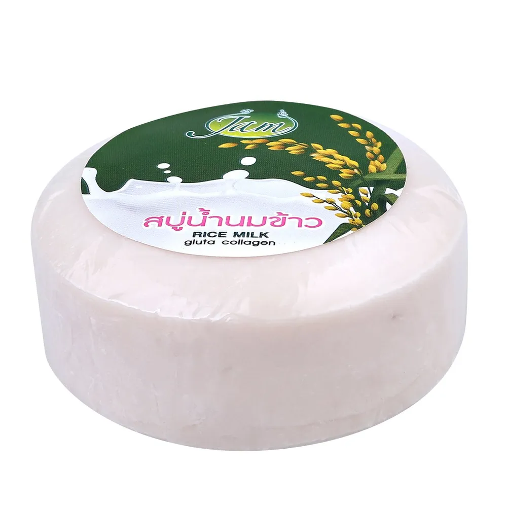 แจม สบู่น้ำนมข้าว กลูต้า คอลลาเจน ผลิตภัณฑ์ที่มีส่วนผสมของน้ำนมข้าวหอมมะลิ กลูต้า และคอลลาเจน ช่วยดูแลผิวหน้าและผิวกาย ทำให้ผิวเนียน นุ่ม ใส เป็นธรรมชาติ สิว ฝ้า กระ จุดด่างดำ ค่อยๆจางลง<br />