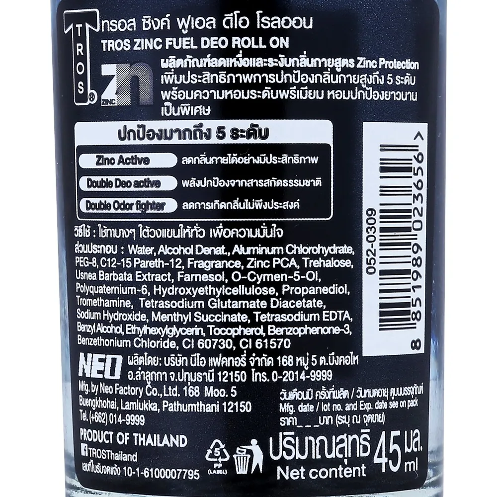 ทรอส ดีโอ โรลออนระงับกลิ่นกาย สูตรซิงค์ฟูเอล 45 มล.