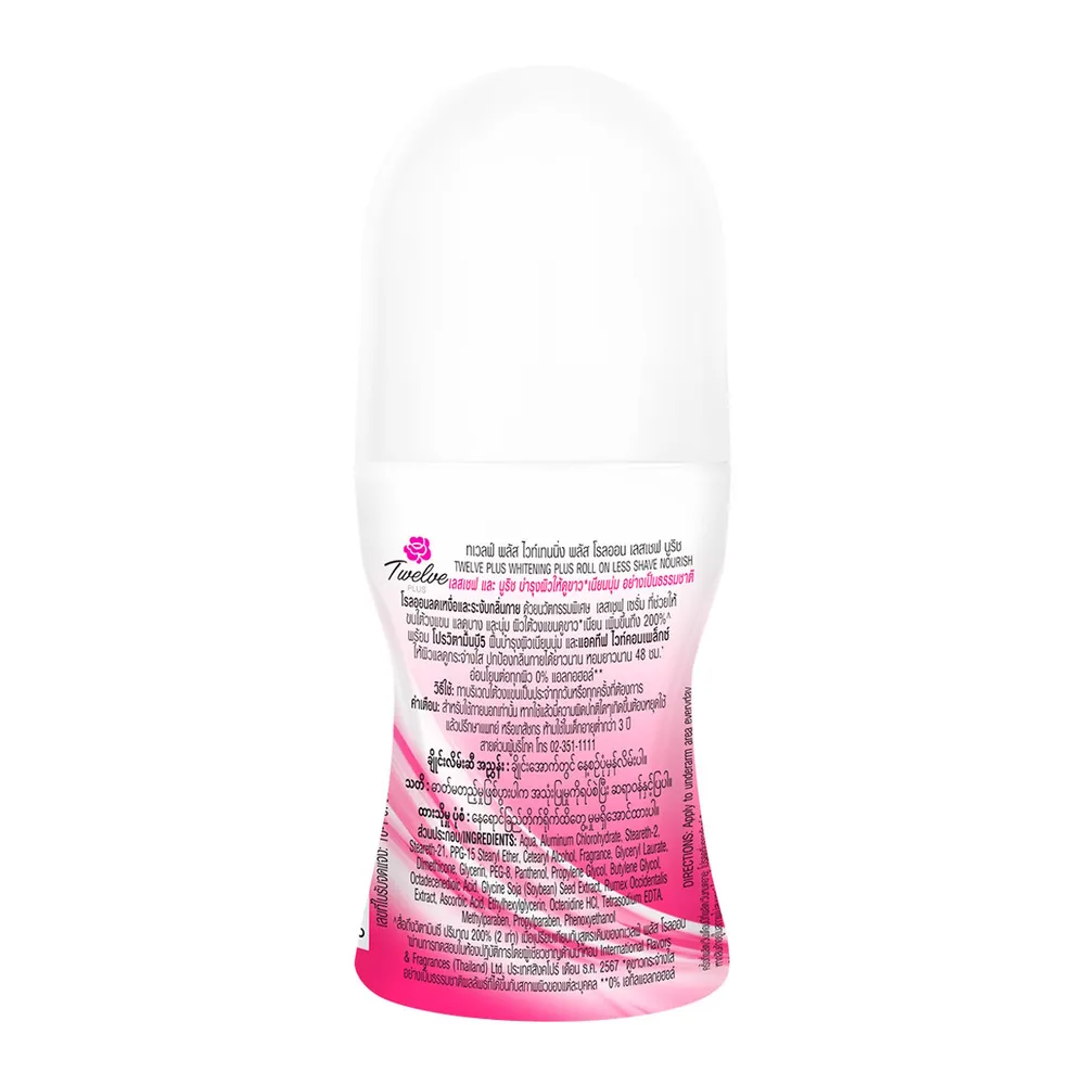 ทเวลฟ์ พลัส โรลออนสูตรไวท์เทนนิ่ง สูตรพิเศษเพื่อปรับผิวคล้ำเสียสะสมให้สว่างสดใสเรียบเนียนช่วยลดการเกิดขนใต้วงแขนลงถึง 20% เมื่อใช้เป็นประจำ ช่วยเก็บความชุ่มชื่นของผิวพร้อมปรับผิวให้ขาวกระจ่างใส จุดด่างดำดูจางลง ไร้แอลกอฮอล์ อ่อนโยนต่อทุกสภาพผิว ปกป้องมั่นใจยาวนาน 48 ชั่วโมง<br />