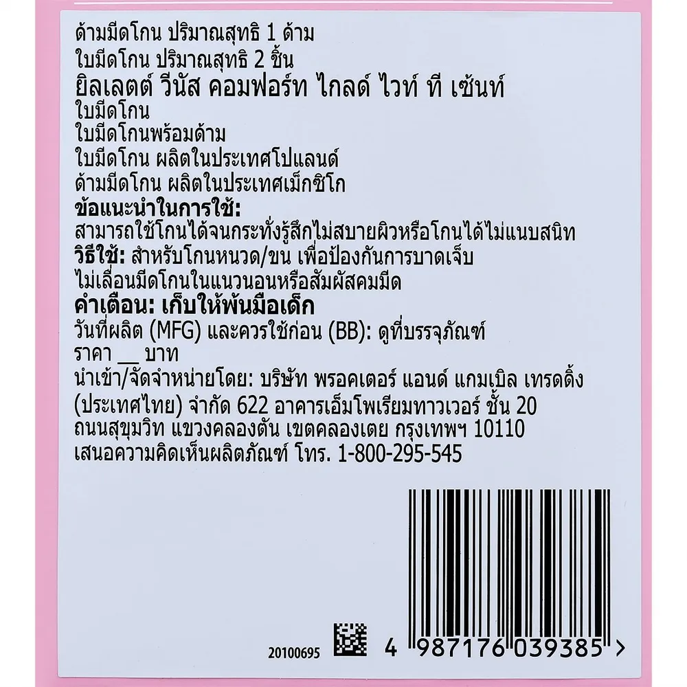 - ยิลเลตต์ วีนัส คอมฟอร์ท ไกลด์ ไวท์ ที แบบ 3 ใบมีด ถูกออกแบบมาให้ผู้หญิงใช้โดยเฉพาะ<br />