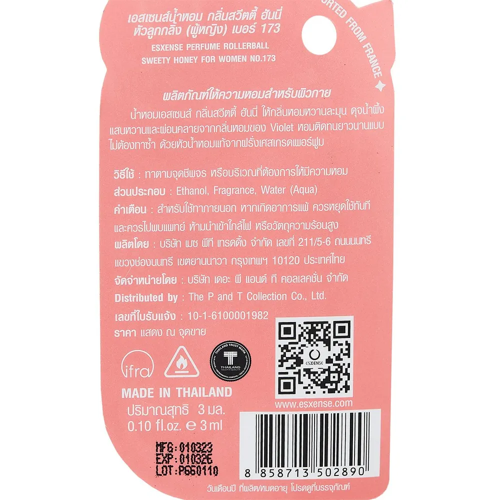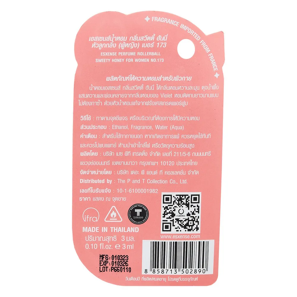 เอสเซนส์ น้ำหอมหัวลูกกลิ้งสำหรับผู้หญิง กลิ่นสวีทตี้ ฮันนี่ 3 มล.
