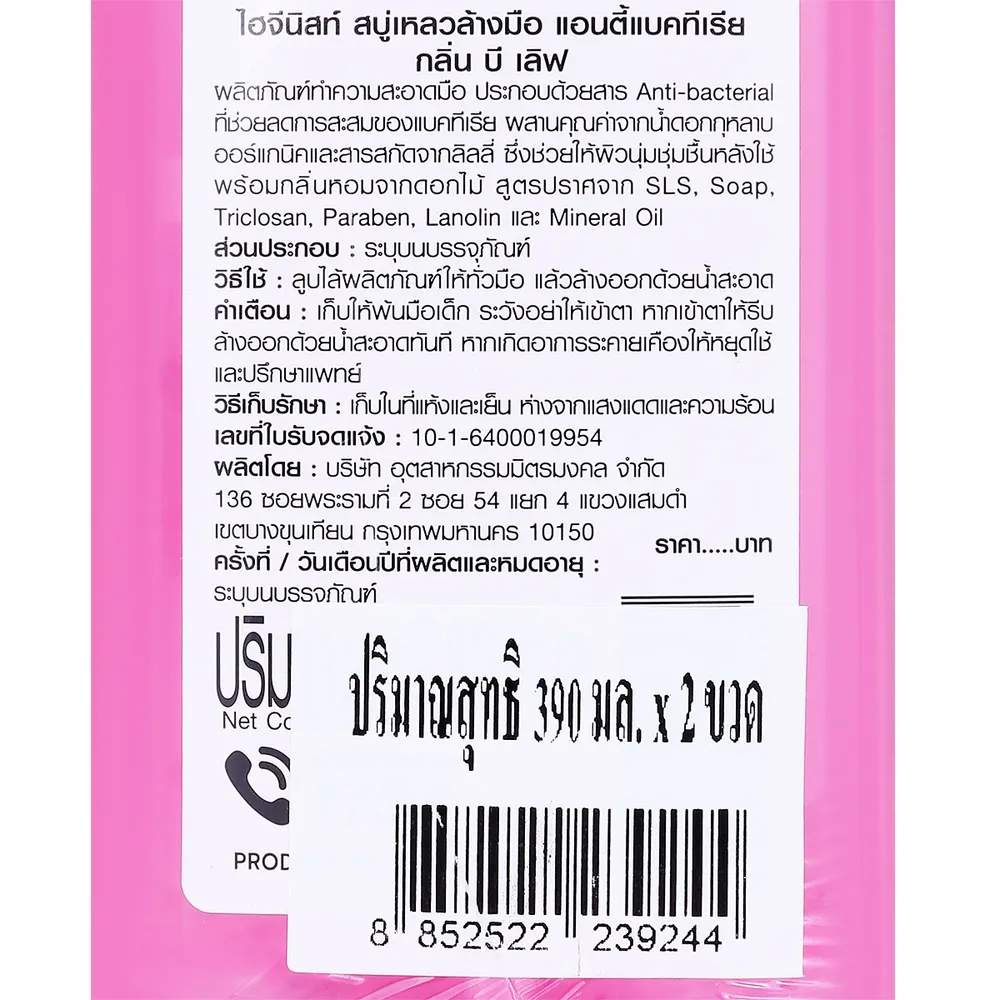 ไฮจีนิสท์ สบู่เหลวล้างมือ แอนตี้แบคทีเรีย กลิ่น บี เลิฟ 390 มล. แพ็คคู่