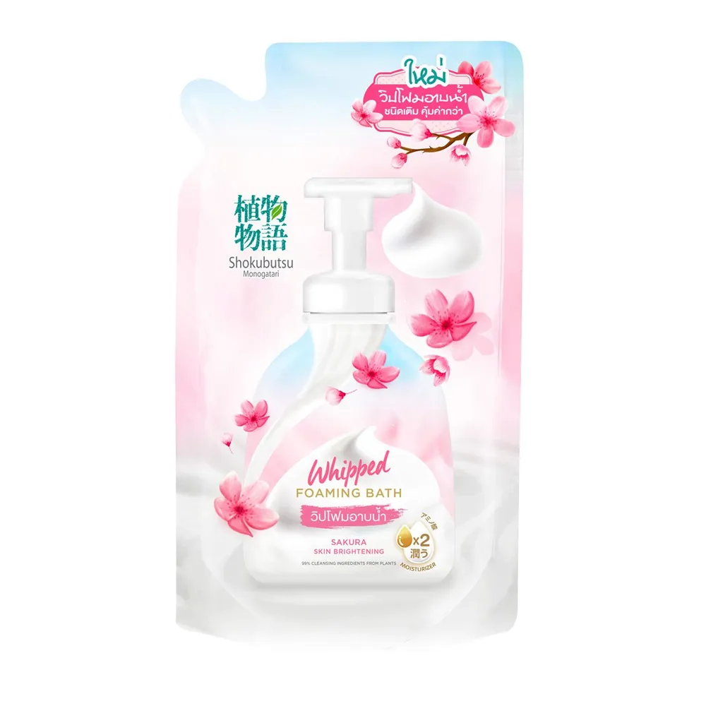 โชกุบุสซึ โมโนกาตาริ วิปโฟมอาบน้ำ ซากุระ สกิน ไบรท์เทนนิ่ง ชนิดถุงเติม 450 มล.
