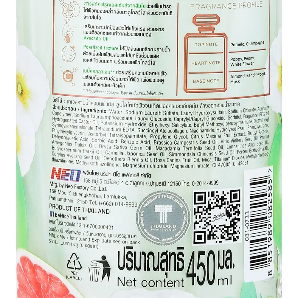 บีไนซ์ เพอร์ฟูมชาวเวอร์เจล เจลอาบน้ำ สูตรส้มโอและป๊อปปี้ 450 มล.