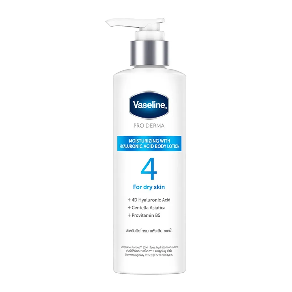 <p>วาสลีน โปร เดอร์มา มอยซ์เจอร์ไรซิ่ง วิธ ไฮยาลูรอนิค แอซิด บอดี้ โลชั่น 4<br />