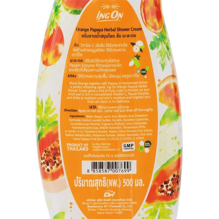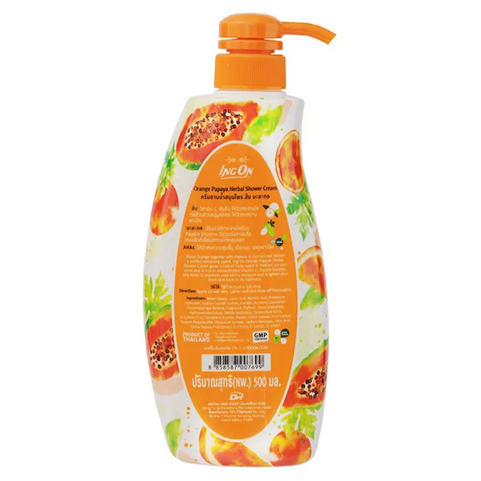 อิงอร ครีมอาบน้ำสมุนไพร ส้มมะละกอ ขวดปั้ม 500 มล.