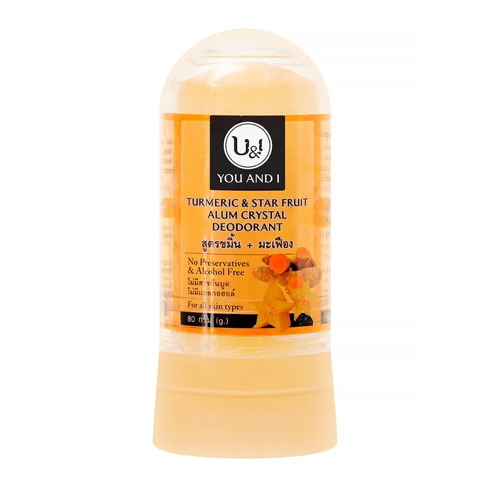 <p>ยู แอนด์ ไอ ผลิตภัณฑ์ระงับกลิ่นกาย สติ๊ก บอดี้ ดีโอโดแรนท์ สูตรขมิ้นและมะเฟือง 80 ก.<br /><br />ยู แอนด์ ไอ ผลิตภัณฑ์ระงับกลิ่นกาย สติ๊ก บอดี้ ดีโอโดแรนท์ สูตรขมิ้นและมะเฟือง สารส้มแท่งระงับกลิ่นกายได้อย่างมีประสิทธิภาพ ไม่มีสารที่ทำร้ายผิว ไม่ระคายเคือง ไม่เหนียวเหนอะหนะ เพื่อผิวใต้วงแขนที่เรียบเนียน ขาวอย่างเป็นธรรมชาติ<br /><br />- ทำจากสารส้มคุณภาพดี เกรด A<br />- สารสกัดจากขมิ้นและมะเฟือง ช่วยลดจุดด่างดำ รอยคล้ำ<br />- ไม่มีแอลกอฮอล์ ไม่มีสารกันเสีย<br />- ช่วยยับยั้งแบคทีเรียที่ทำให้เกิดกลิ่น ระงับกลิ่นกายได้ยาวนาน<br />- ไม่อุดตันรูขุมขน<br />- ไม่เหนียวเหนอะหนะ แห้งสบายผิว<br />- ไม่ทิ้งคราบบนเสื้อผ้า<br />- ประหยัด ใช้ได้นาน<br /><br /> *ภาพประกอบใช้เพื่อการโฆษณาเท่านั้น</p>