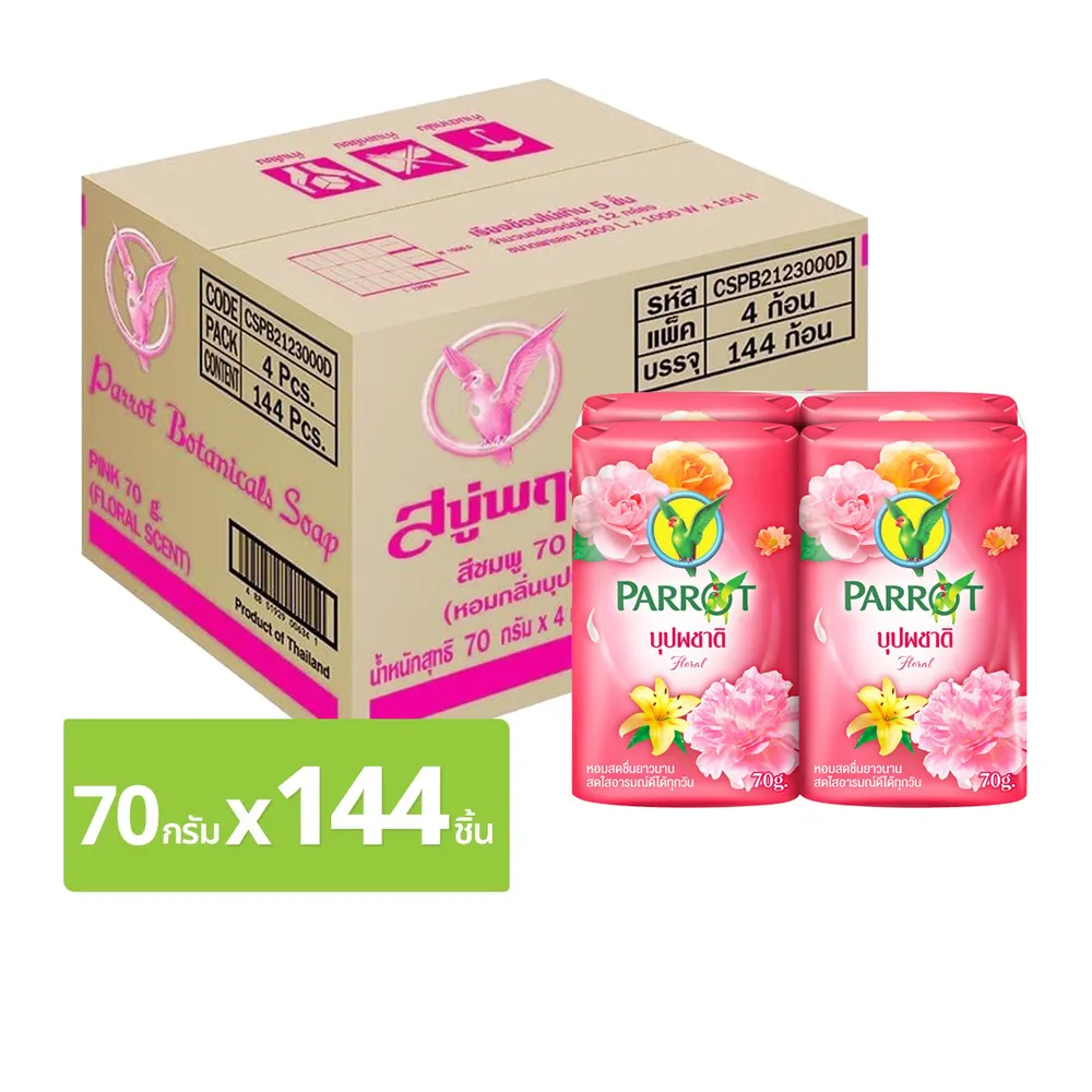 พฤกษานกแก้ว สบู่ก้อน กลิ่นบุปผชาติ 70 ก. แพ็ค 144
