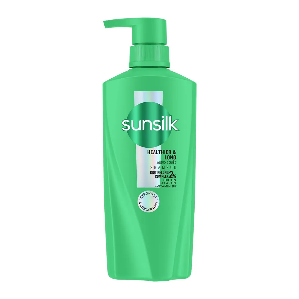 <p>ซันซิล แชมพู สูตรผมยาวสวยสุขภาพดี<br /> <br /> ซันซิล (Sunsilk) ผลิตภัณฑ์แชมพูที่ดูแลเส้นผมของสาวไทยมาอย่างยาวนาน คิดค้นและสร้างสรรค์ผลิตภัณฑ์โดยช่างผมชื่อดังระดับโลก เพื่อตอบโจทย์ปัญหาผมทุกประเภท เพื่อให้ผมสวยพร้อมอยู่เคียงข้างทุกสถานการณ์และทุกโมเม้นต์<br /> <br /> - ซันซิล เฮลธีเออร์ &amp; ลอง แชมพู สูตรผมยาวสวยสุขภาพดี<br /> - Activ-infusion มีไบโอติน ช่วยบำรุงผมที่ยาวให้มีสุขภาพดี<br /> - ซันฟลาวเวอร์ออยล์ ฟื้นบำรุงหนังศีรษะ<br /> - อะมิโนแอซิด ในเคราตินช่วยให้ผมแข็งแรง<br /> - ให้ผมยาววววว สวย ดูมีสุขภาพดี<br /> <br /> *ทดสอบการขาดร่วงกับปอยผมเมื่อใช้ซันซิลแชมพูและครีมบำรุงผม เทียบกับแชมพูที่ไม่มีสารคอนดิชันเนอร์<br /> <br /> <strong>วิธีใช้</strong><br /> ชโลมแชมพูให้ทั่วเส้นผมที่เปียก นวดเบาๆ จนเกิดฟองแล้วล้างออกให้สะอาด ควรสระ 2 ครั้ง<br /> <br /><span style="color: #ff0000;">*บริษัทฯ ขอสงวนสิทธิ์ในการปรับเปลี่ยนราคาจำหน่ายและโปรโมชั่น รวมถึงแพ็คเกจและปริมาณสินค้าจากผู้ผลิตได้ตามความเหมาะสม โดยไม่จำเป็นต้องแจ้งให้ทราบล่วงหน้า</span><br /> <br /> *ภาพประกอบใช้เพื่อการโฆษณาเท่านั้น</p>
