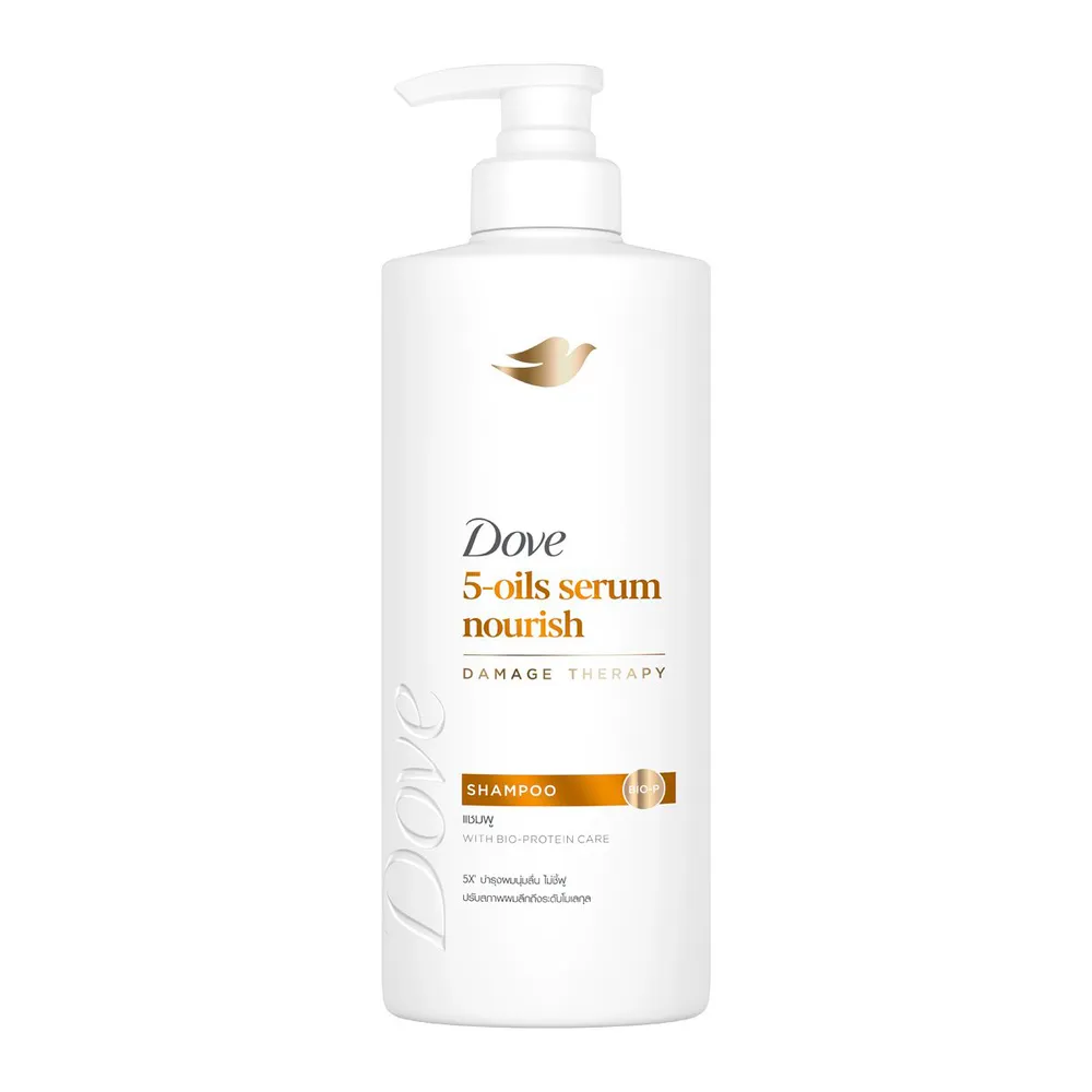 ใหม่! โดฟ 5-ออยล์ เซรั่ม นอริช แชมพู พร้อมเซรั่มออยล์ 5 ชนิด (อาร์แกน, มารูล่า, อัลมอนด์, พริมโรส และซันฟลาวเวอร์ ซีด) ที่ได้รับการยอมรับว่าช่วยมอบและล็อคความชุ่มชื้นให้เส้นผม โดฟ 5-ออยล์ เซรั่ม นอริช ช่วยบำรุงอย่างล้ำลึก เพื่อ 5X&#39; บำรุงผมนุ่มลื่น ไม่ชี้ฟู<br />