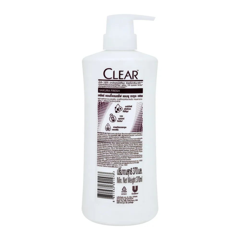 เคลียร์ แชมพูขจัดรังแค สูตรซากุระเฟรช 370 มล.