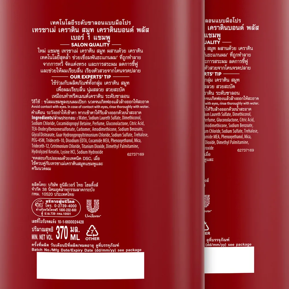 เทรซาเม่ แชมพู สูตรเคราตินสมูท 370 มล. แพ็คคู่