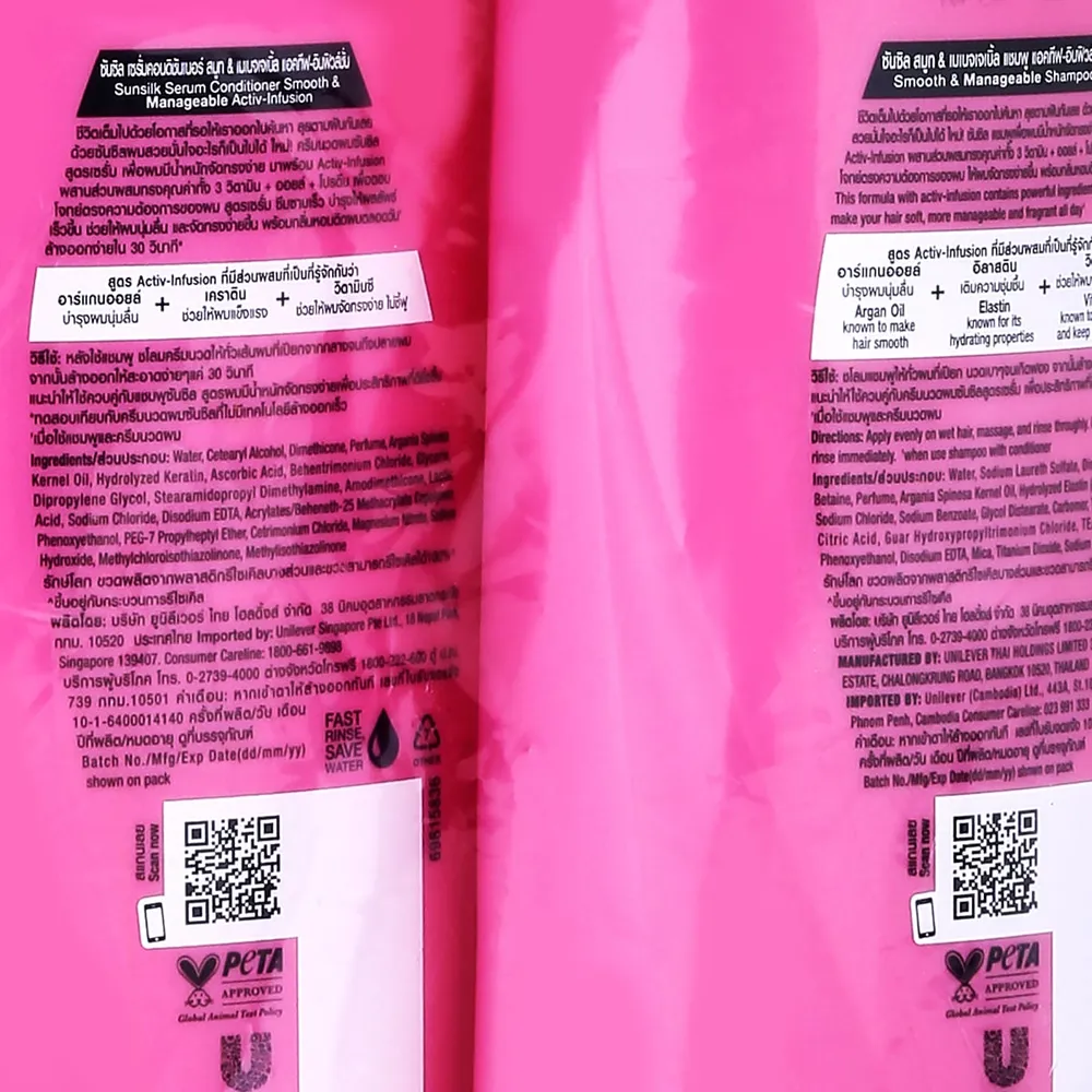 <p>ซันซิล แชมพูและเซรั่มคอนดิชันเนอร์ สูตรผมมีน้ำหนัก จัดทรงง่าย<br /> <br /> ซันซิล (Sunsilk) ผลิตภัณฑ์แชมพูที่ดูแลเส้นผมของสาวไทยมาอย่างยาวนาน คิดค้นและสร้างสรรค์ผลิตภัณฑ์โดยช่างผมชื่อดังระดับโลก เพื่อตอบโจทย์ปัญหาผมทุกประเภท เพื่อให้ผมสวยพร้อมอยู่เคียงข้างทุกสถานการณ์และทุกโมเม้นต์<br /> <br /> - ซันซิล สูตรเซรั่ม ให้ผมมีน้ำหนัก จัดทรงง่าย<br /> - สูตร Activ-Infusion มีส่วนผสมของอาร์แกนออยล์ บำรุงผมนุ่มลื่น<br /> - อิลาสติน เติมความชุ่มชื้น<br /> - วิตามินซี ช่วยให้ผมจัดทรงง่าย ไม่ชี้ฟู<br /> - ช่วยบำรุงผมให้มีน้ำหนัก จัดทรงง่าย ดูมีชีวิตชีวา<br /> - ให้เส้นผมของคุณพลิ้วสวย ทุกการเคลื่อนไหว ผมสวยได้ทุกสถานการณ์<br /> <br /> <em>*ทดสอบกับปอยผมเมื่อใช้ซันซิลแชมพูและครีมบำรุงผม เทียบกับแชมพูที่ไม่มีสารคอนดิชันเนอร์</em><br /> <br /><span style="color: #ff0000;">*บริษัทฯ ขอสงวนสิทธิ์ในการปรับเปลี่ยนราคาจำหน่ายและโปรโมชั่น รวมถึงแพ็คเกจและปริมาณสินค้าจากผู้ผลิตได้ตามความเหมาะสม โดยไม่จำเป็นต้องแจ้งให้ทราบล่วงหน้า</span><br /> <br /> *ภาพประกอบใช้เพื่อการโฆษณาเท่านั้น</p>