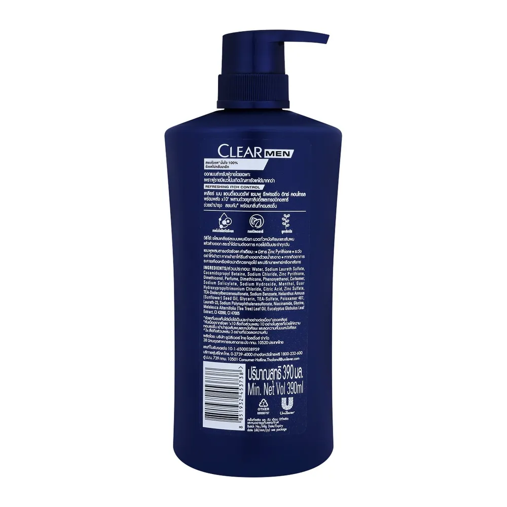 เคลียร์ เมน แอนตี้แดนดรัฟ แชมพู รีเฟรชชิ่ง อิช คอนโทรล 390 มล.