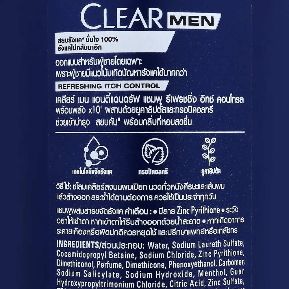 - เคลียร์ เมน แอนตี้แดนดรัฟ แชมพู รีเฟรชชิ่ง อิช คอนโทรล<br />