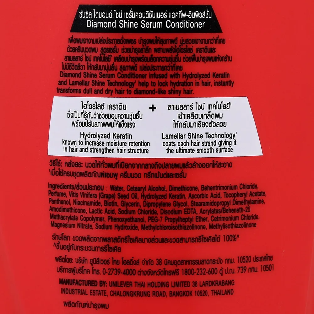 ซันซิล ครีมนวดผมสูตรเซรั่ม ไดมอนด์ ไชน์! ผสมด้วยเทคโนโลยี Hydrolyzed Keratin และ Lamellar Shine พิเศษจาก ซันซิล ช่วยบำรุง เคลือบ และล็อคความชุ่มชื้นอย่างล้ำลึกให้กับเส้นผมของคุณทันที เปลี่ยนผมแห้งเสียหยาบกระด้างให้เงางามดุจเพชร<br />