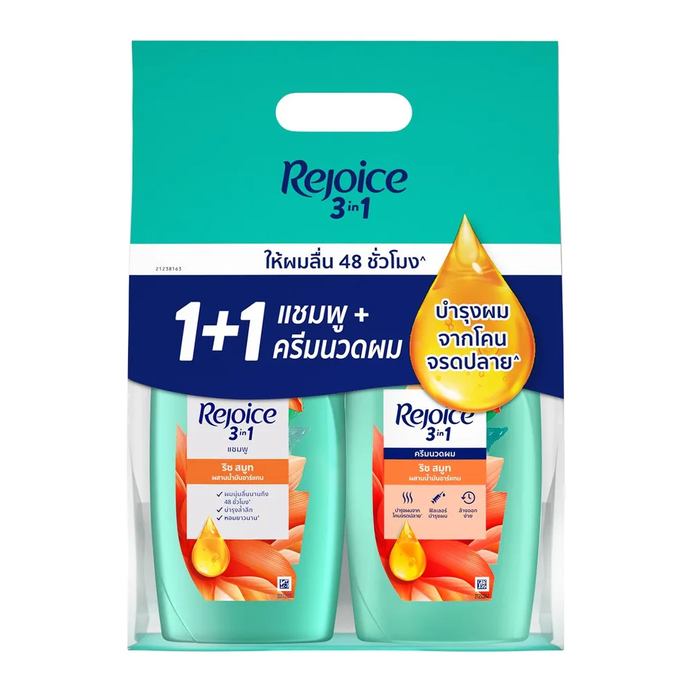 รีจอยส์ แชมพูและครีมนวดผม สูตรริช สมูท 370 มล. แพ็ค 1+1