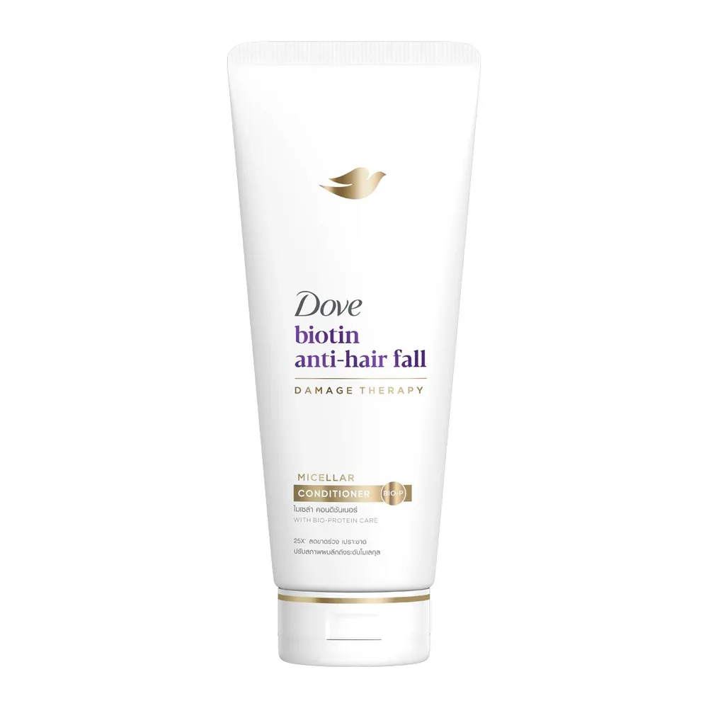 ใหม่! โดฟ ไบโอติน แอนตี้แฮร์ฟอล ไมเซล่า คอนดิชันเนอร์ คอนดิชันเนอร์บำรุงขั้นกว่า&#39;&#39; เทคโนโลยีไมเซล่า มอบสัมผัสบางเบา บำรุงหนังศีรษะและเส้นผมอย่างล้ำลึก อ่อนโยน ลดการขาดร่วงของเส้นผม พร้อมไบโอติน ที่ได้รับการยอมรับว่าช่วยลดการเปราะขาด โดฟ ไบโอติน แอนตี้แฮร์ฟอล ลดการขาดร่วงของเส้นผมได้มากถึง 25X&#39; บำรุงโคนผมให้แข็งแรงไม่ขาดหลุดง่าย สำหรับผมอ่อนแอ ขาดร่วง<br />