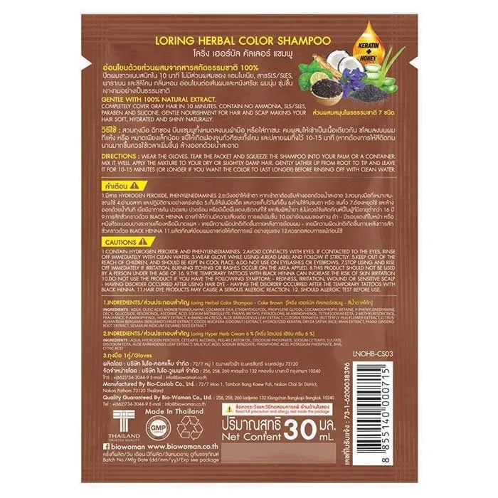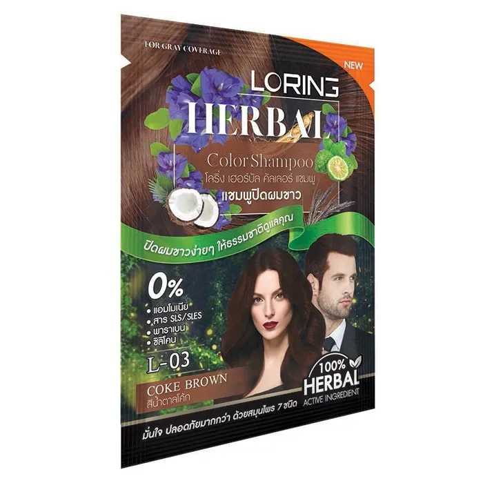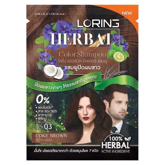โลริ่ง เฮอร์บัล คัลเลอร์ แชมพูปิดผมขาว สีน้ำตาลโค้ก 30 มล.