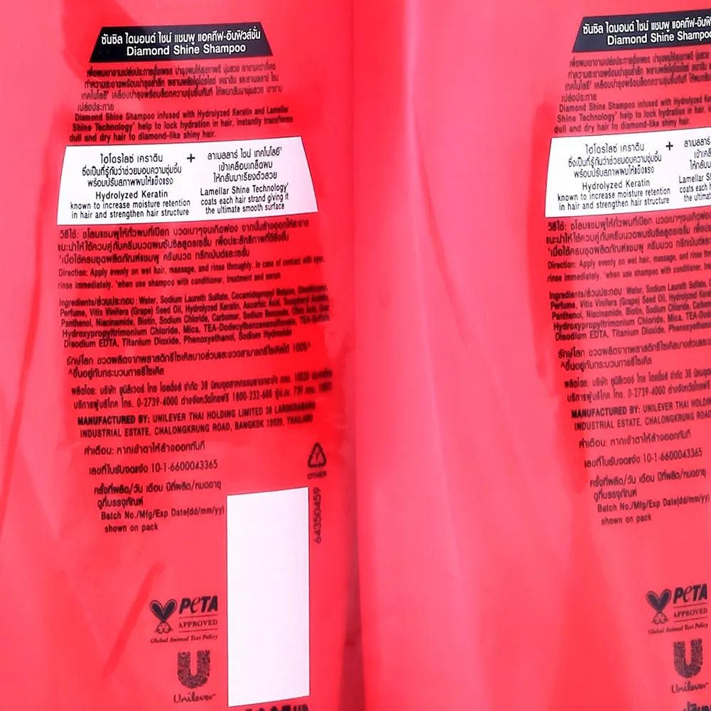 <p>ซันซิล แชมพูสระผม ไดมอนด์ ไชน์<br /> <br /> ถึงเวลาสระและบำรุงเส้นผมด้วยแชมพูและเซรั่มคอนดิชันเนอร์ของเราเพื่อผมที่ดูสดใส สวยเลิศอย่างเป็นธรรมชาติ<br /> <br /> - ไฮโดรไลซ์ เคราติน และลาเมลลาร์ ไชน์ เทคโนโลยีเฉพาะ ที่มีส่วนช่วยฟื้นบำรุงผมแห้งกร้านให้กลับมาแลดูนุ่มสวย เงางาม เปล่งประกาย<br /> - แอคทีฟ-อินฟิวส์ชั่น มีส่วนผสมซึ่งเป็นที่รู้จักกันว่า "เคราตินและซิลค์โปรตีน" ที่มีส่วนช่วยให้เส้นผมแข็งแรงและกักเก็บความชุ่มชื้น<br /> - ทำความสะอาดสิ่งสกปรกที่เกาะติดอยู่ตามเส้นผมได้อย่างล้ำลึก<br /> - ลดการชี้ฟู<br /> - ผลลัพธ์ที่ได้ขึ้นอยู่กับสภาพเส้นผมของแต่ละบุคคล<br /><br /><span style="color: #ff0000;">*บริษัทฯ ขอสงวนสิทธิ์ในการปรับเปลี่ยนราคาจำหน่ายและโปรโมชั่น รวมถึงแพ็คเกจและปริมาณสินค้าจากผู้ผลิตได้ตามความเหมาะสม โดยไม่จำเป็นต้องแจ้งให้ทราบล่วงหน้า</span><br /><br />*สีของสินค้าอาจมีความแตกต่าง ขึ้นอยู่กับการตั้งค่าของแต่ละหน้าจอ และภาพประกอบใช้เพื่อการโฆษณาเท่านั้น</p>