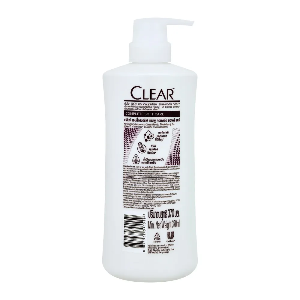 เคลียร์ แชมพูขจัดรังแค สูตรคอมพลีทซอฟท์แคร์ 370 มล.