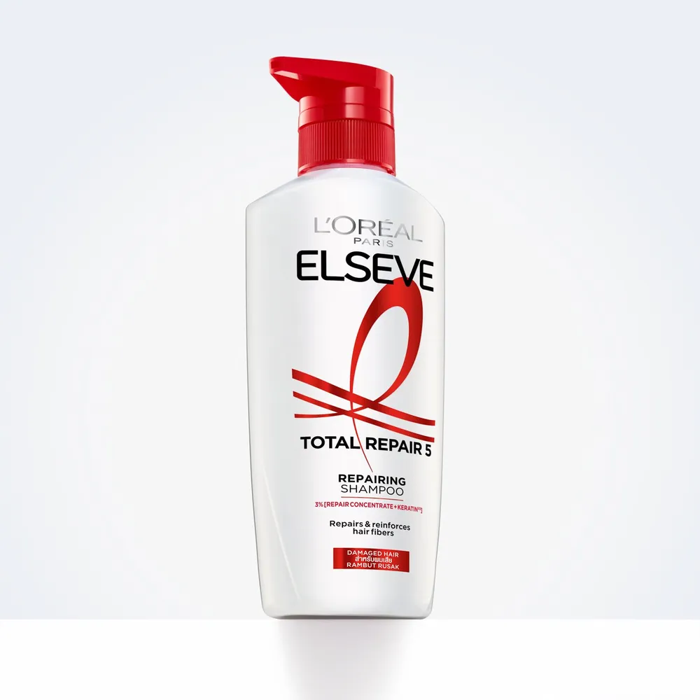 ลอรีอัล ปารีส เอลแซฟ โททอล รีแพร์ 5 รีแพร์ริ่ง แชมพูสูตรฟื้นบำรุงผมเสีย หนึ่งเดียวของ ลอรีอัล ปารีส ที่ช่วยจัดการทั้ง 5 ปัญหาผมเสียล้ำลึก ฟื้นบำรุงให้สุขภาพผมดูดีขึ้น เงางาม ลดปัญหาผมแตกปลาย<br />