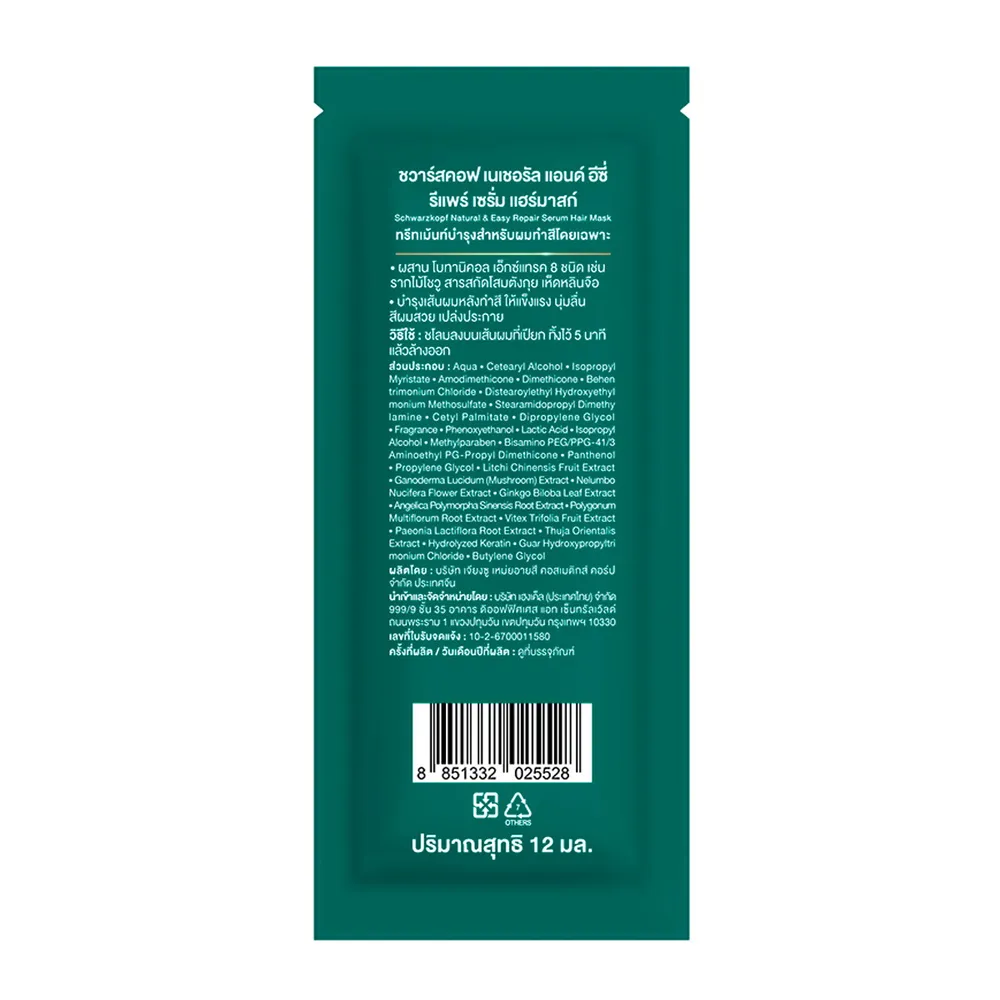 <p>ชวาร์สคอฟ เนเชอรัล แอนด์ อีซี่ รีแพร์ เซรั่ม แฮร์มาสก์ 12 มล.<br />