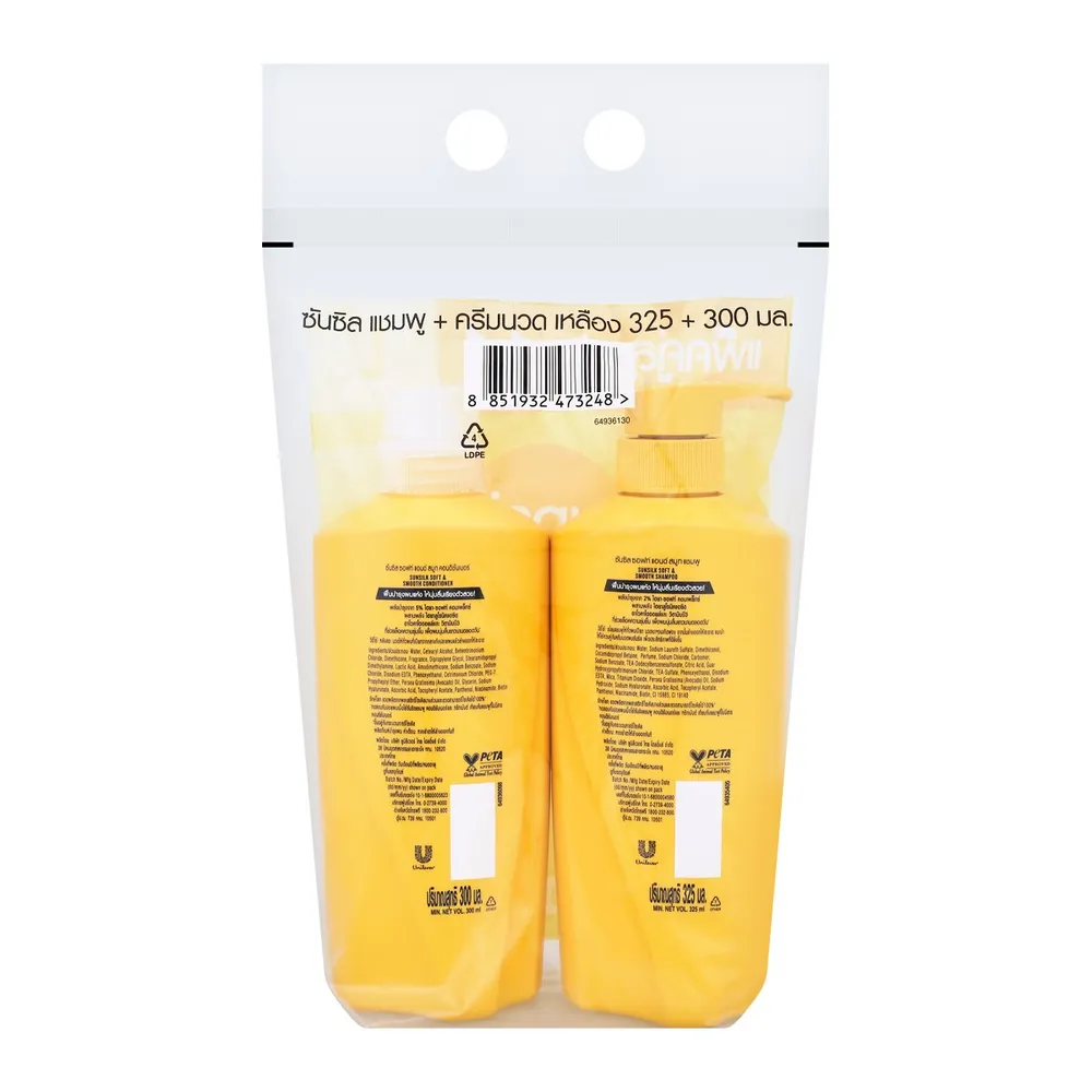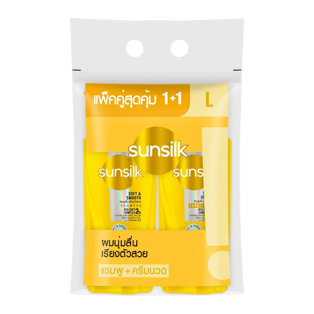 ซันซิล ซอฟท์ แอนด์ สมูท แชมพูสระผม 325 มล. และ เซรั่มคอนดิชันเนอร์ 300 มล. แพ็ค 1+1