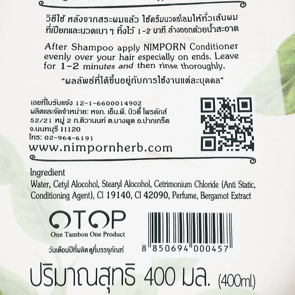 นิ่มพร ครีมนวดผม สูตรมะกรูด 400 มล.