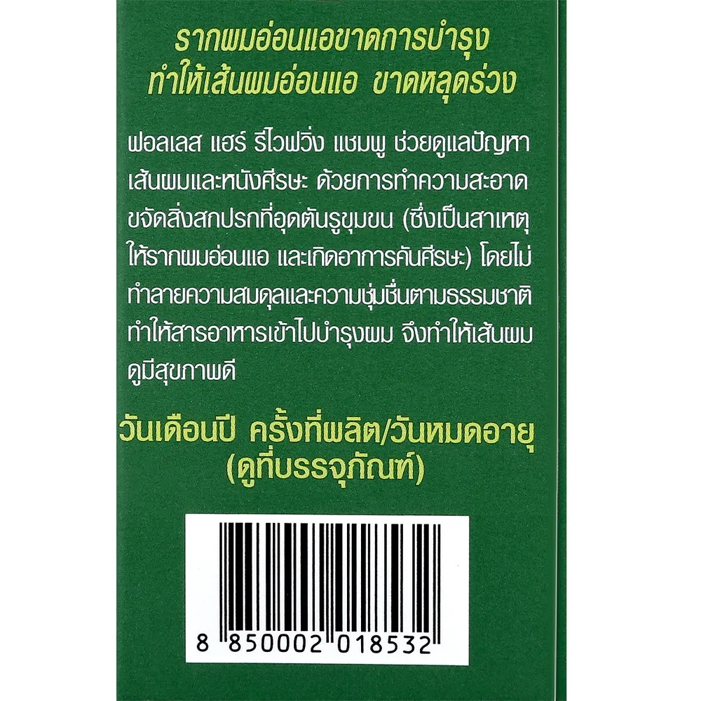 ฟอลเลส แฮร์รีไวฟวิ่ง ผลิตภัณฑ์ยาสระผมสำหรับผมอ่อนแอขาดหลุดร่วง ด้วยคุณค่าน้ำมันสกัดเย็นจากผิวมะกรูด ช่วยการขาดหลุดร่วงของเส้นผม ให้ผมดูสุขภาพดี เงางามอย่างเป็นธรรมชาติ และยิ่งมีกลิ่นหอมสะอาดมั่นใจตลอดวัน<br />