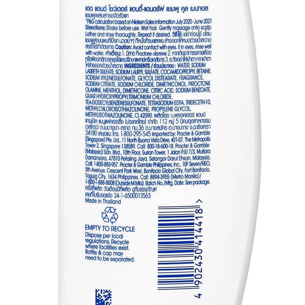 - เฮดแอนด์โชว์เดอร์ แชมพูขจัดรังแค สูตรคูลเมนทอล<br />