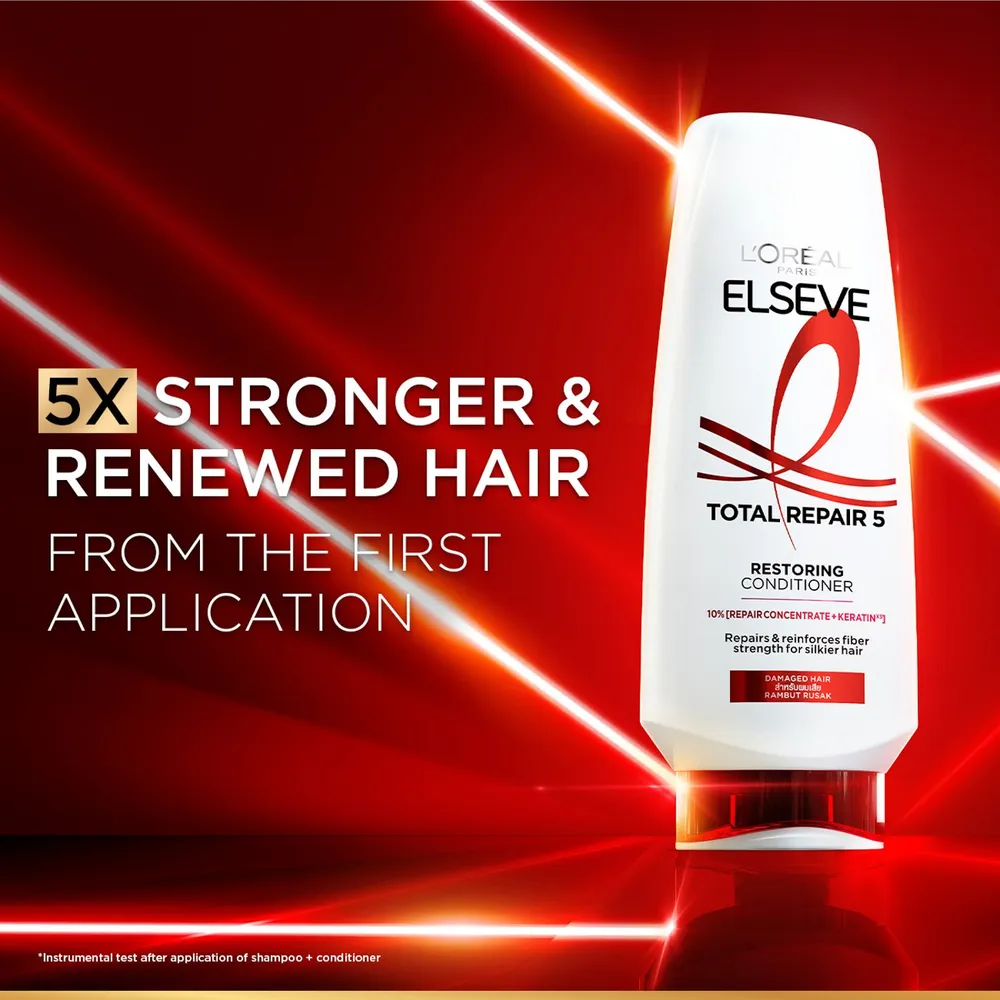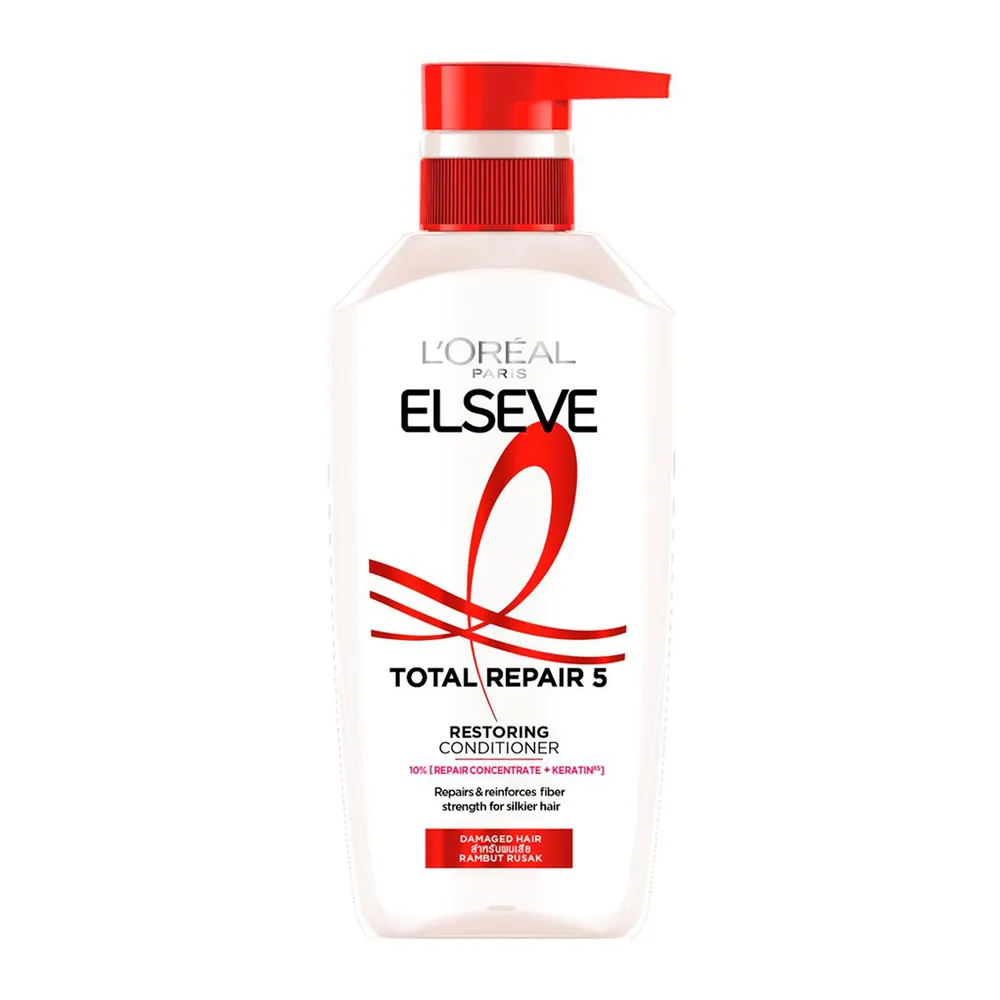 ลอรีอัล ปารีส เอลแซฟ โททอล รีแพร์ 5 ฟิลเลอร์ รีแพร์ริ่ง คอนดิชันเนอร์ ครีมนวดผมสูตรฟื้นบำรุงผมเสียล้ำลึก หนึ่งเดียวของลอรีอัล ปารีส ที่ผสาน KERATINxs อนุภาพขนาดเล็ก และส่วนผสมฟื้นบำรุงเข้มข้น จัดการ 5 ปัญหาผมเสีย ให้กลับดูสวยสุขภาพดี ราวกับไม่เคยเสีย<br />