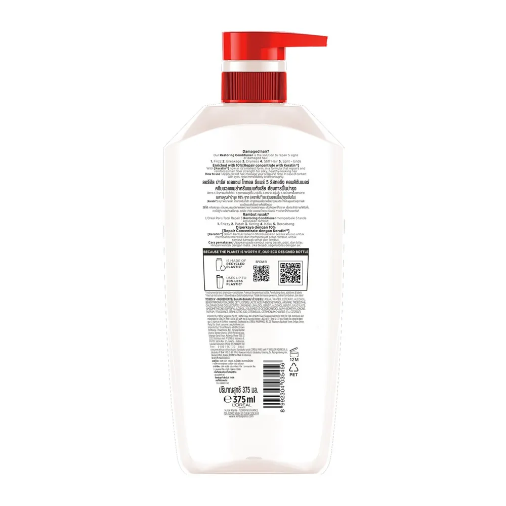 ลอรีอัล ปารีส เอลแซฟ โททอล รีแพร์ 5 ฟิลเลอร์ รีแพร์ริ่ง คอนดิชันเนอร์ 375 มล.