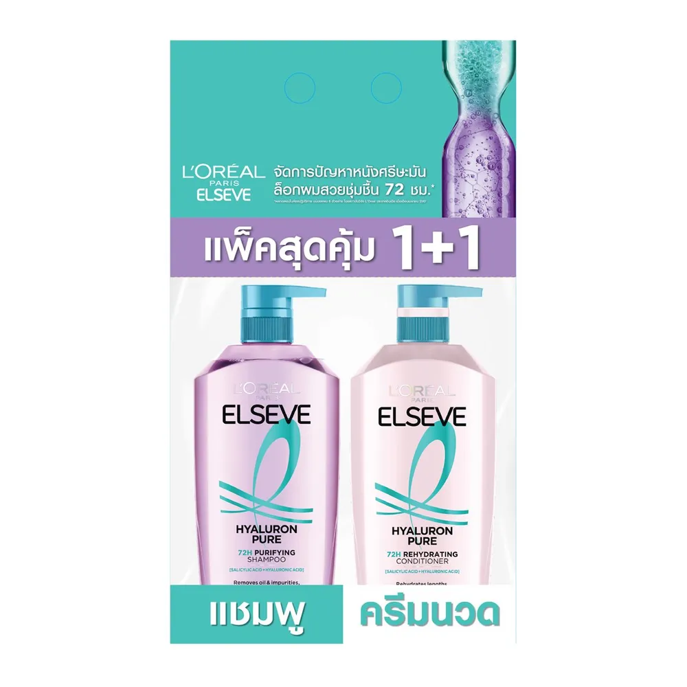 <p>ลอรีอัล ปารีส เอลแซฟ ไฮยาลูรอน เพียว 72เอช เพียวริฟายอิ้ง แชมพู + ลอรีอัล ปารีส เอลแซฟ ไฮยาลูรอน เพียว 72เอช รีไฮเดรติ้ง คอนดิชันเนอร์<br />