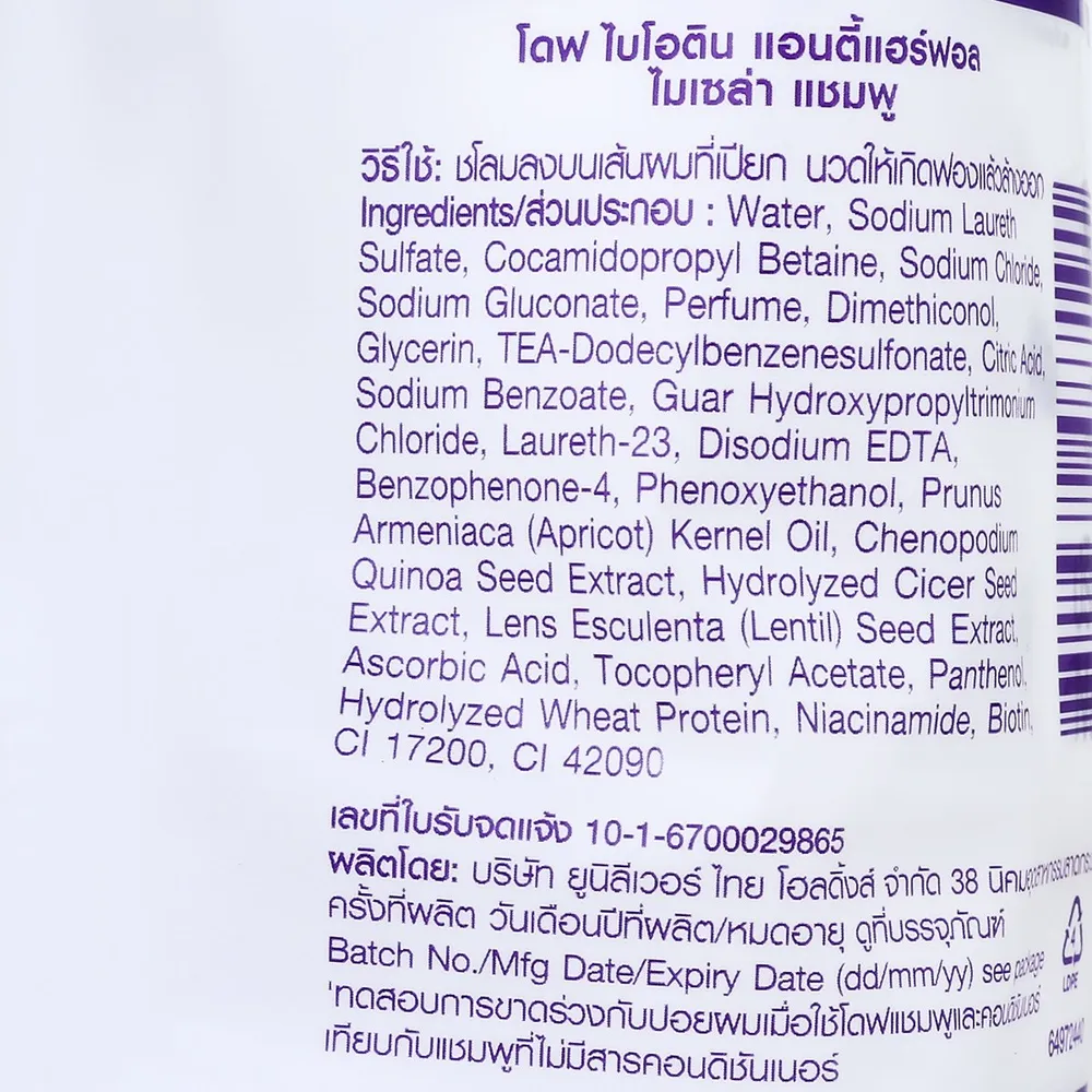 ใหม่! โดฟ ไบโอติน แอนตี้แฮร์ฟอล ไมเซล่า พร้อมไบโอติน ที่ได้รับการยอมรับว่าช่วยลดการเปราะขาด โดฟ ไบโอติน แอนตี้แฮร์ฟอล ลดการขาดร่วงของเส้นผมได้มากถึง 25X&#39; บำรุงโคนผมให้แข็งแรงไม่ขาดหลุดง่าย<br />