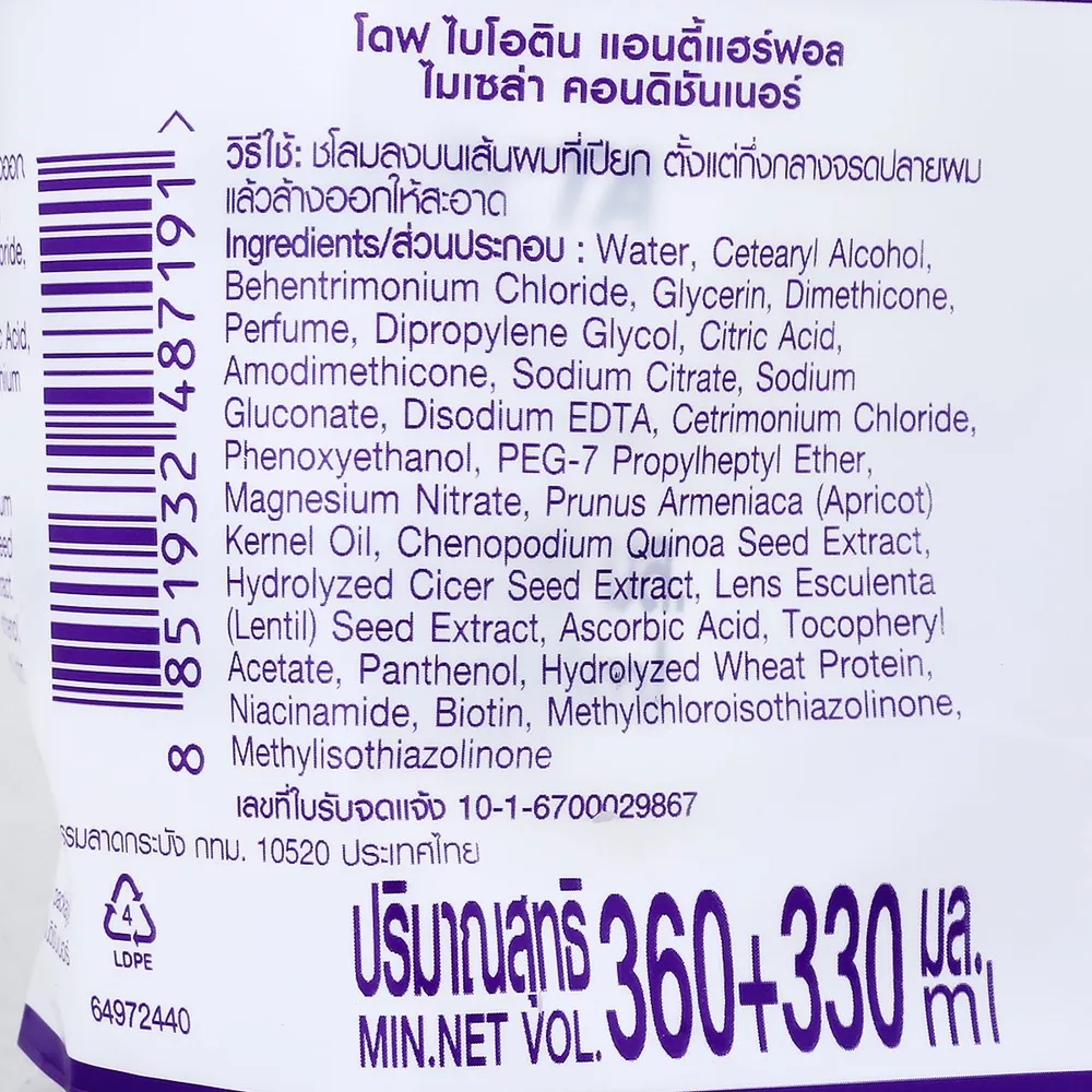 โดฟ ไบโอติน แอนตี้แฮร์ฟอล ไมเซล่า แชมพูและคอนดิชันเนอร์ 360+330 มล.