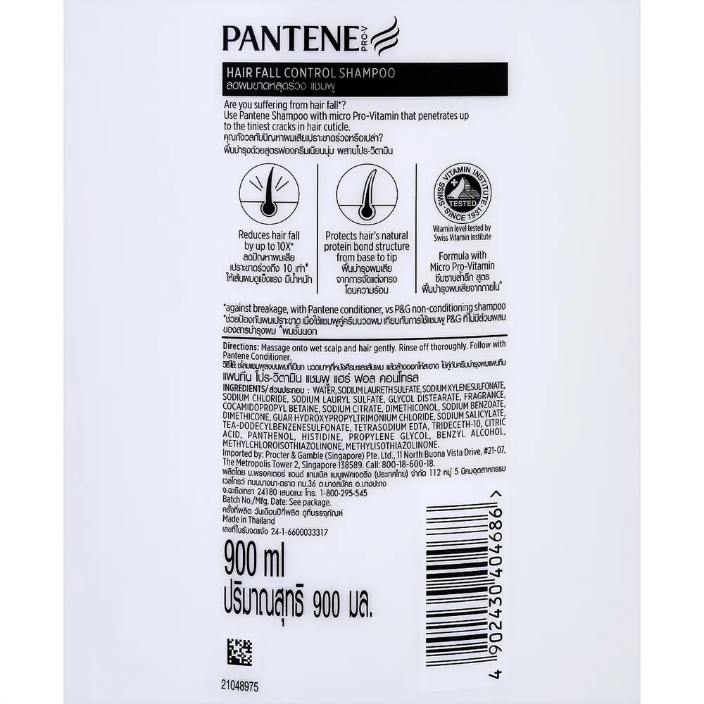 แพนทีน แชมพู สูตรแฮร์ฟอลคอนโทรล 900 มล.