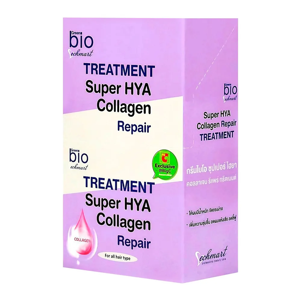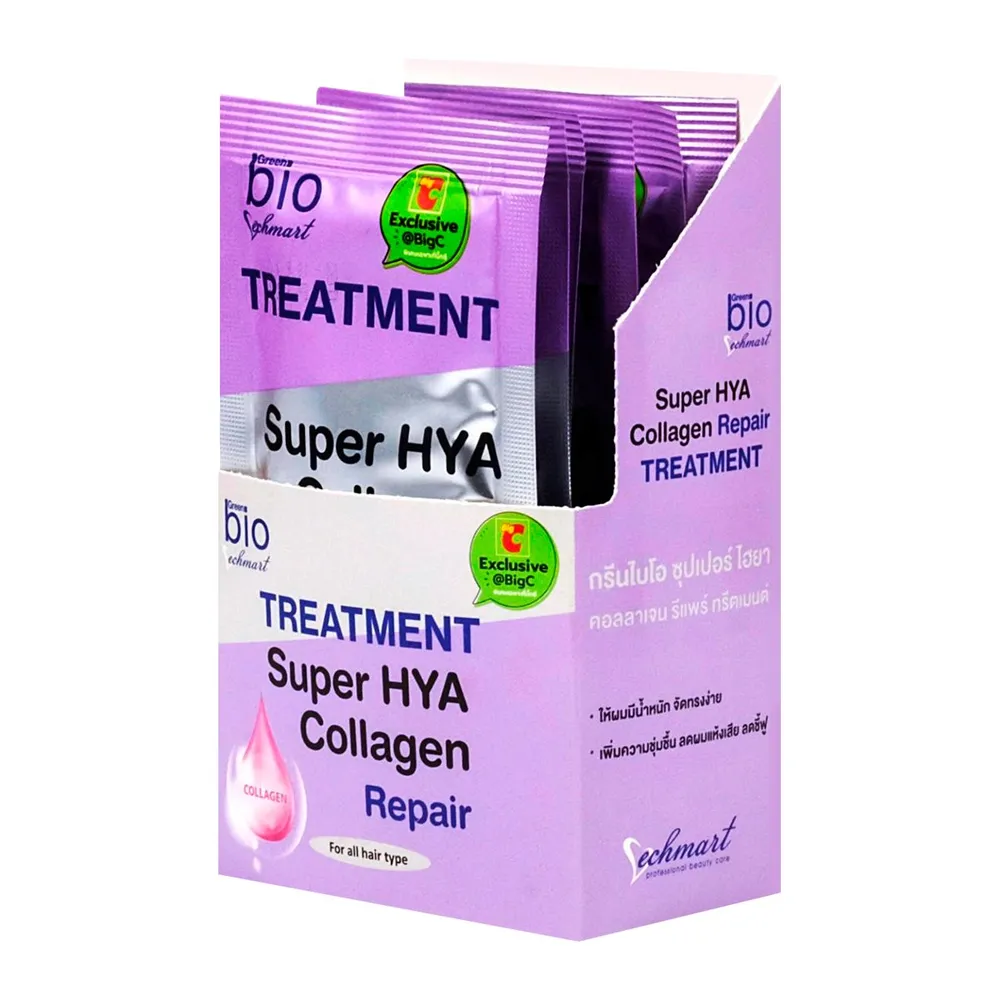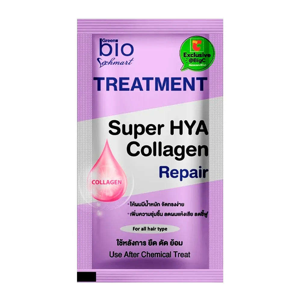 กรีนไบโอ ซุปเปอร์ ไฮยา คอลลาเจน ทรีทเมนต์ ครีม (ทรีทเมนต์ผมกรีนไบโอ ซองสีม่วง) สูตร Soft&amp; Deep Moistur ด้วยคุณลักษณะเนื้อครีม ผสานคุณค่า ไฮยา และ คอลลาเจน เพิ่มความชุ่มชื้นและความแข็งแรงให้กับเส้นผม คืนความยืดหยุ่นให้กับเส้นผม<br />