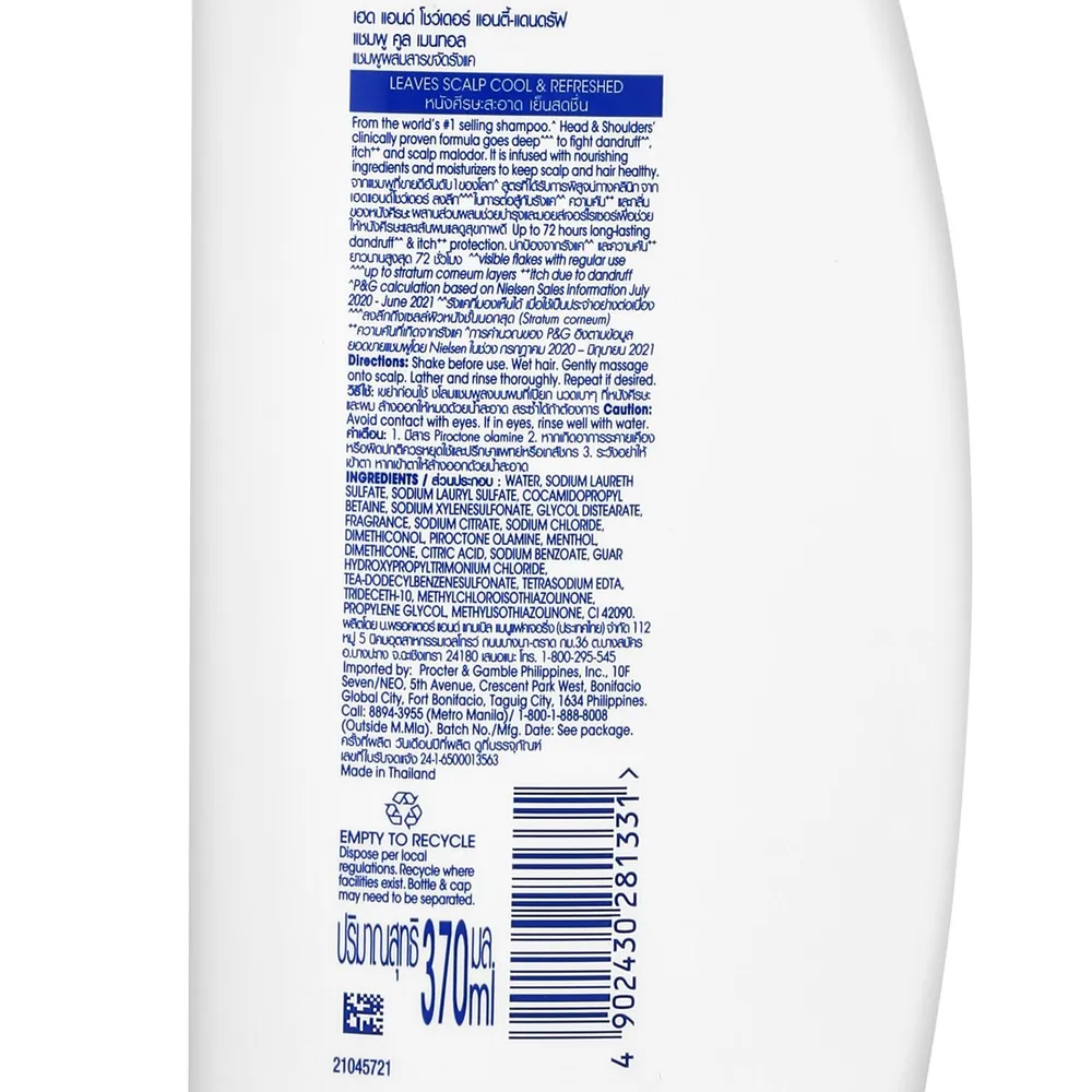 เฮดแอนด์โชว์เดอร์ แชมพูขจัดรังแค สูตรคูลเมนทอล 370 มล.
