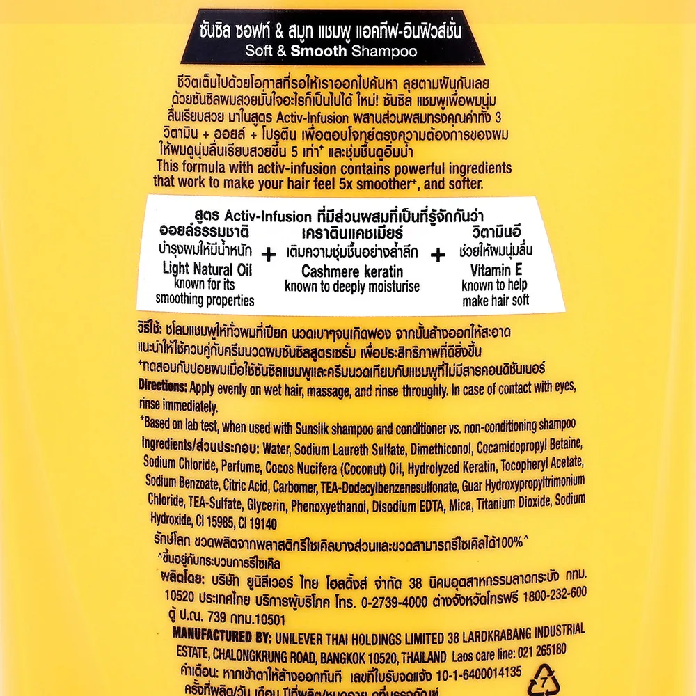 - ซันซิล ซอฟท์ &amp; สมูท แชมพู สูตรผมนุ่มลื่นเรียบสวย<br />