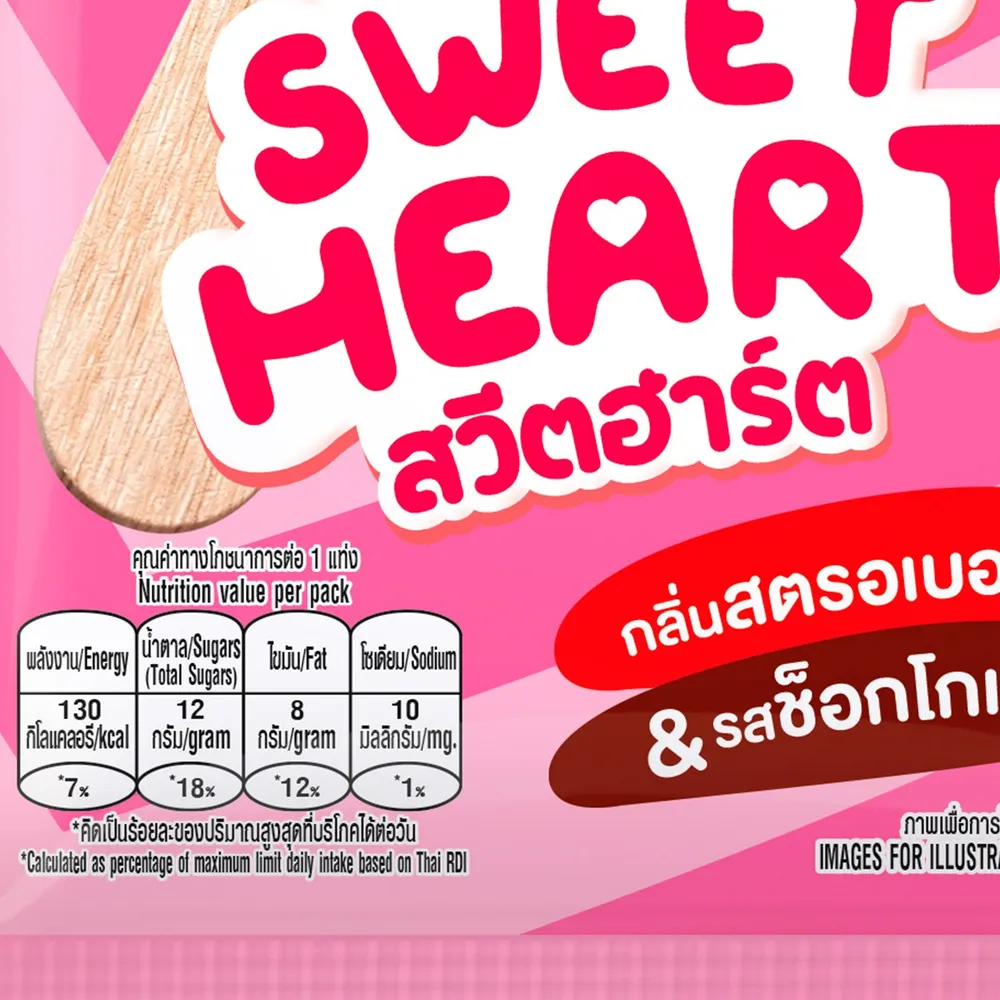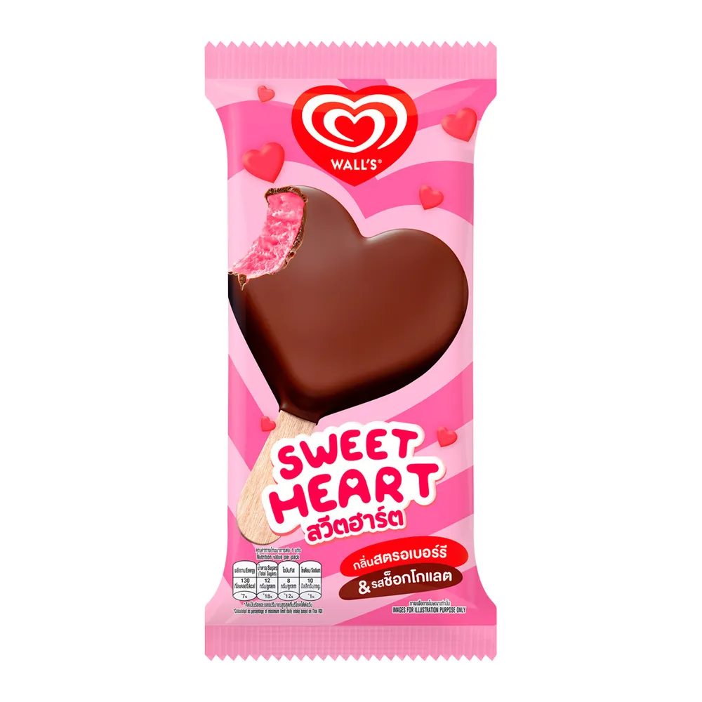 วอลล์ ไอศกรีมรูปหัวใจสุดน่ารัก ไอศกรีมกลิ่นสตรอว์เบอร์รีเปรี้ยวหวาน เคลือบด้วยช็อกโกแลตโคทติ้งหนากรอบสุดเข้มข้น<br />