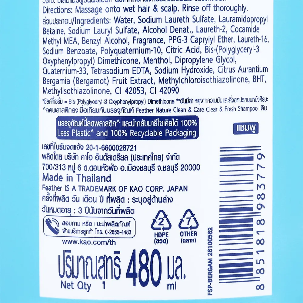 แฟซ่า เนเจอร์คลีนแอนด์แคร์ แชมพู สูตรสดชื่นสบายหนังศีรษะ 480 มล.