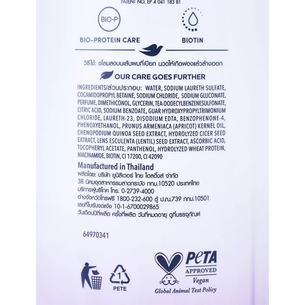 - พิสูจน์ผลลัพธ์ที่ดีที่สุดเมื่อใช้ครบชุดผลิตภัณฑ์ แชมพู คอนดิชันเนอร์ ทรีทเม้นท์มาส์ก และออยล์ ของโดฟ<br />