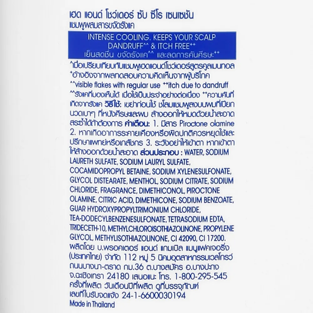 เฮดแอนด์โชว์เดอร์ แชมพูขจัดรังแค สูตรซับซีโร่ เซนเซชัน แชมพูขจัดรังแคสูตรที่เย็นที่สุด ช่วยทำความสะอาดได้อย่างล้ำลึก ขจัดรังแคที่มองเห็นได้ เย็นสดชื่นยาวนาน ให้คุณสบายหนังศีรษะตลอดทั้งวัน<br />