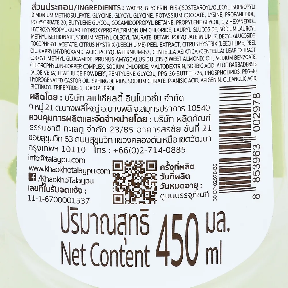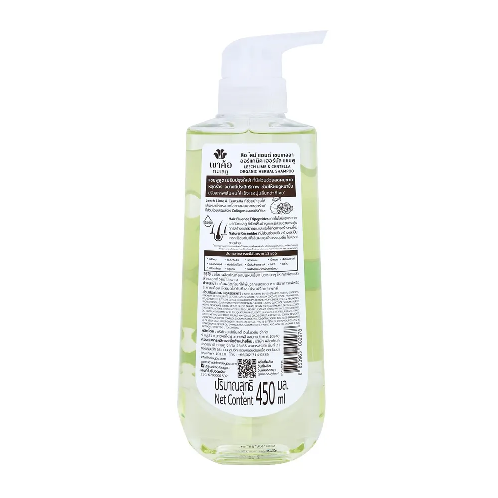เขาค้อทะเลภู แชมพูสมุนไพรมะกรูดและใบบัวบก สำหรับผมขาดหลุดร่วง 450 มล.